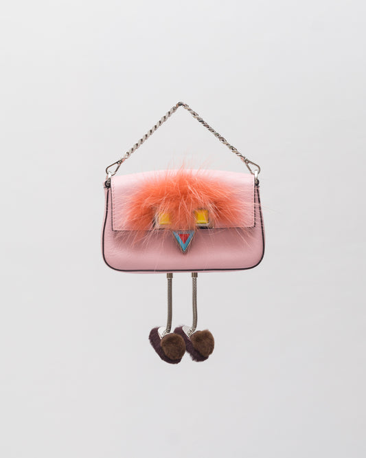 Fendi Mini Canai Leather Shoulder Bag Gold Silver