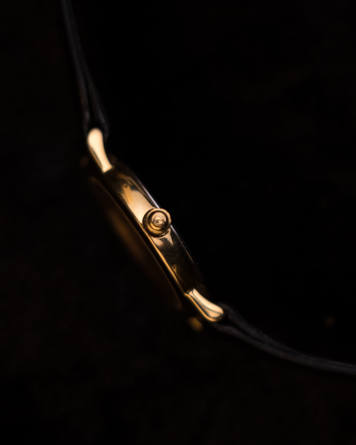 Gold-tone round case in very good vintage condition with light, age-appropriate wear visible on close inspection. The slim case profile and lugs remain well preserved.