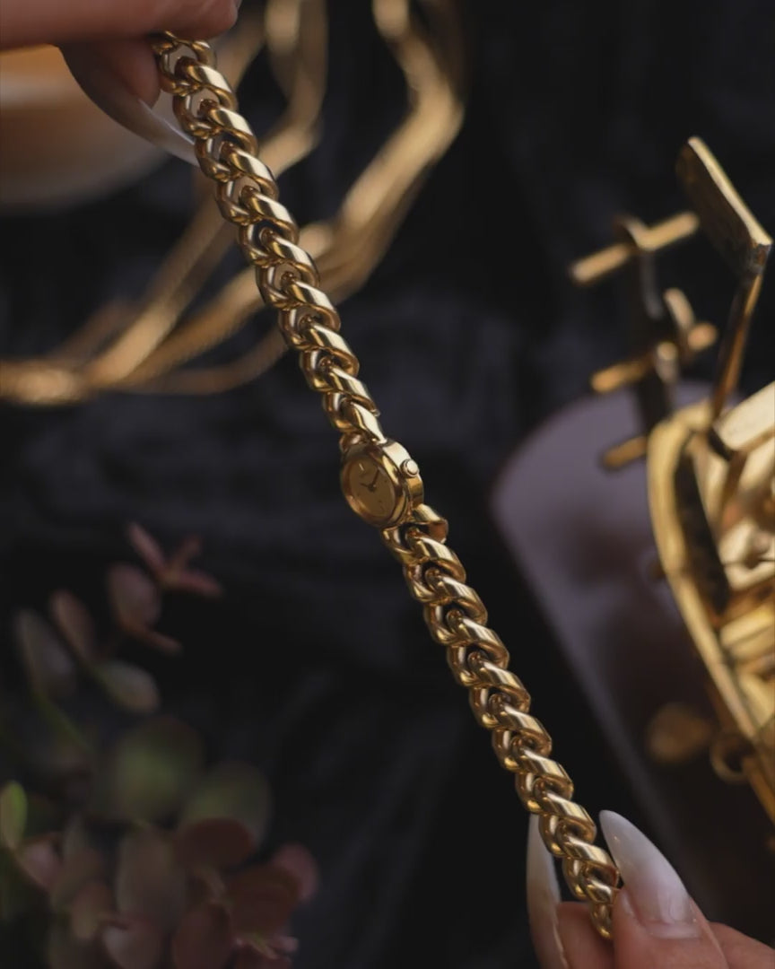 Compact and elegant, it reflects the era’s fascination with miniature watches designed to wear more like gold adornment than a traditional timepiece.